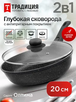 Сковорода 20 см для индукции Традиция, съемная ручка