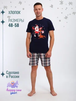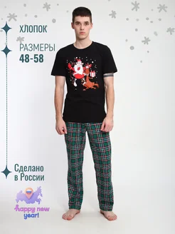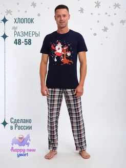 Пижама для мужчин со штанами новогодняя в клетку хлопок