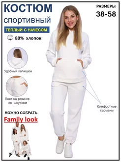Спортивный костюм теплый с начесом и капюшоном оверсайз