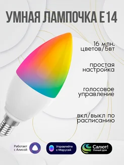 Умная лампочка RGB с Wi-Fi, Алисой, 5W E14