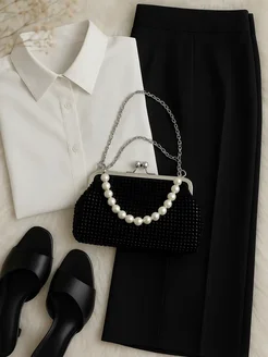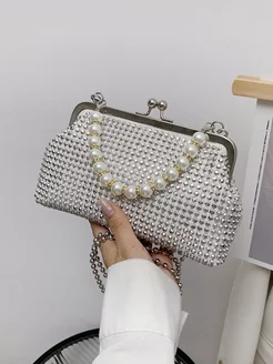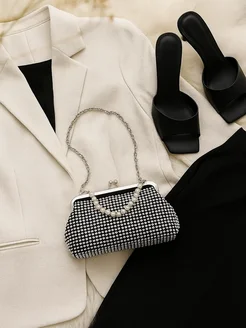 Клатч вечерний с ручкой и цепочкой со стразами