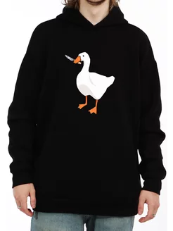 Худи оверсайз с принтом опасного гуся капюшоном и начёсом