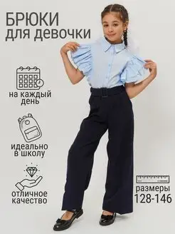 Брюки палаццо школьные широкие с поясом и карманами