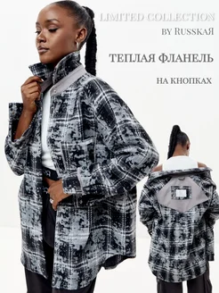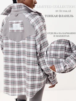 Удлинённая рубашка оверсайз в клетку с капюшоном