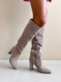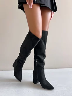 Сапоги демисезонные на каблуке замшевые трубы