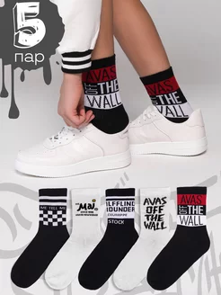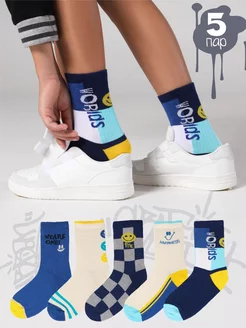 Носки высокие спортивные с принтом набор 5 пар