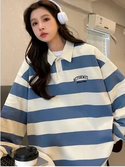 Лонгслив в полоску поло оверсайз