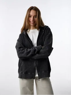 Зип худи оверсайз на молнии с эффектом потертости
