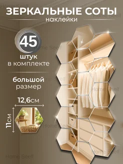Интерьерные зеркальные наклейки соты на стену 45 штук
