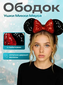 Ободок для волос ушки Микки Маус с бантом блестящие