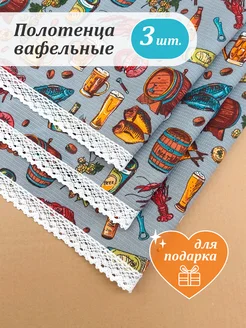 Полотенца кухонные вафельные для дома 67х45 см набор 3 шт