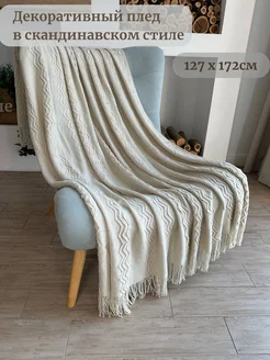 Вязаный плед в скандинавском стиле и стиле бохо