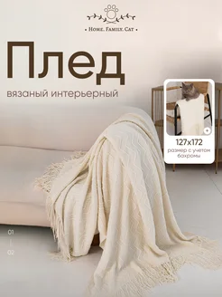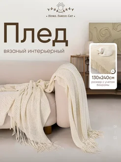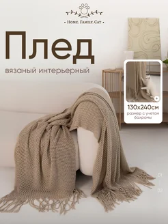 Плед вязаный на диван и кровать интерьерный