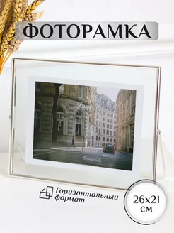 Фоторамка 15x20 21x26 горизонтальная стеклянная серебряная