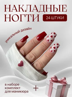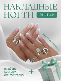 Накладные ногти с дизайном и клеем короткие набор 24 шт