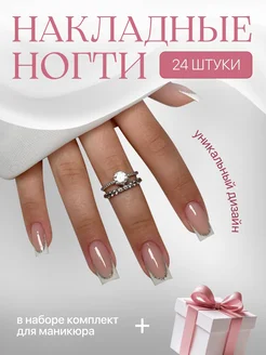 Накладные ногти с клеем и дизайном френч типсы длинные