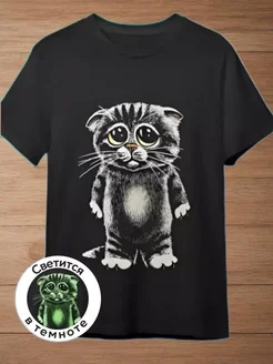 Футболка светящиеся в темноте котик парные