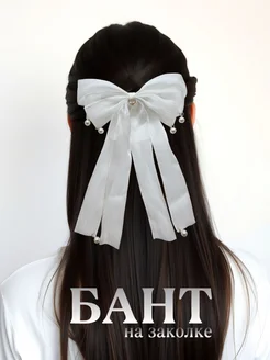Большой бант для волос с жемчугом на заколке