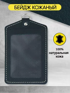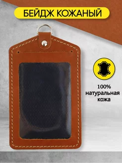 Бейдж из натуральной кожи для пропуска, карт и проездных