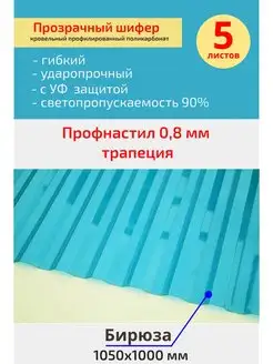 Кровельный, шифер трапеция (бирюза) 1050х1000 мм. 5 шт