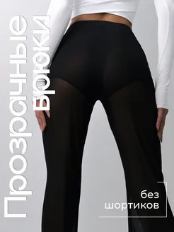 Брюки прозрачные клеш на резинке для танцев high heels сетка