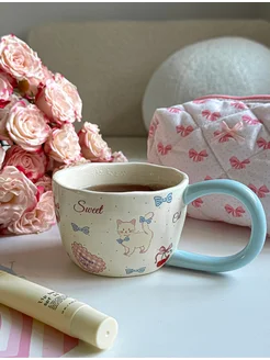 Кружка керамическая для чая кофе чашка, кружка с бантиком
