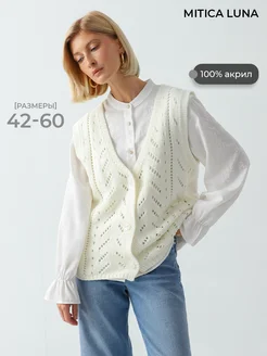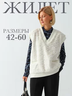 Вязаный жилет с экомехом на спинке большие размеры