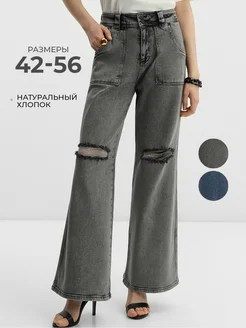 Джинсы прямые женские с Washing - эффект большие размеры