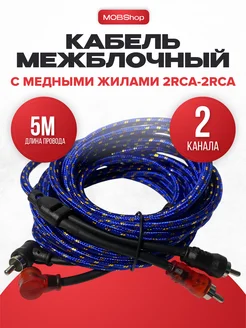 Межблочный кабель 2RCA-2RCA в оплётке автозвук 5м