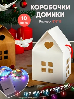 Коробки "Высокий домик" 10 штук. Бонбоньерки с гирляндой