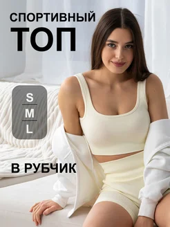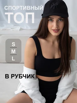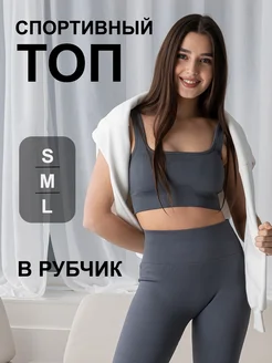 Топ спортивный на бретелях в рубчик с чашечками укороченный