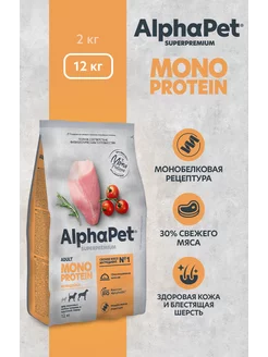 Сухой корм MONOPROTEIN из индейки для ср. и кр. собак 12 кг