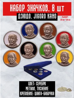 Набор пин значков 8 шт— Дзигоро Кано. Дзюдо, Кодокан. Серебр