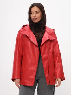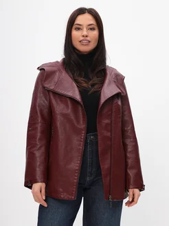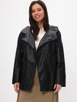 Куртка кожаная демисезонная оверсайз с капюшоном