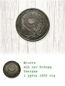 Монета 20 лет Победы Звезда 1 рубль 1965 год