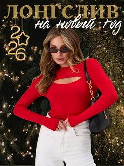 Лонгслив с вырезом на груди нарядная базовая кофта