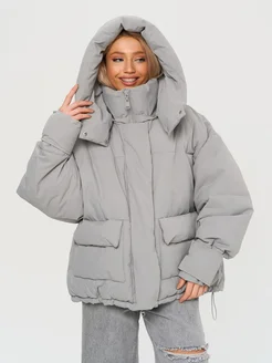 Куртка оверсайз демисезонная с капюшоном короткая