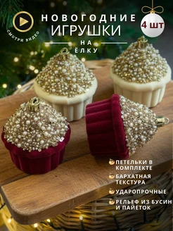 Новогодние игрушки на елку набор кексиков 4 шт