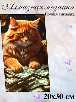 Алмазная мозаика на подрамнике кот с деньгами 20х30 см