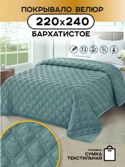 Покрывало на кровать 220х240 бархатистое стеганое велюр