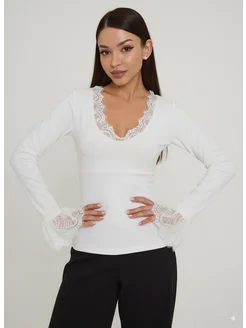 Лонгслив нарядный с кружевом облегающий