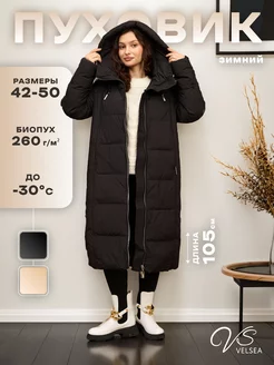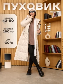 Пуховик зимний длинный с капюшоном