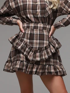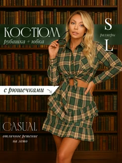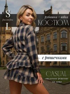 Костюм с короткой юбкой и рубашкой в клетку