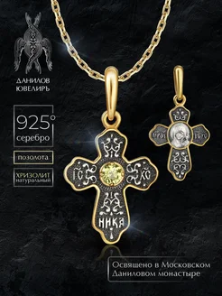 Крест серебряный с хризолитом