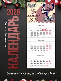 Календарь 2026 новогодний трехблочный мастеру маникюра