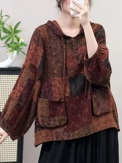 Блузка женская оверсайз рубашка бохо с капюшоном