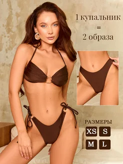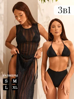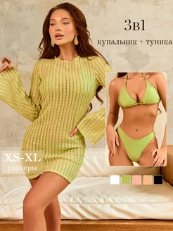 Купальник в рубчик раздельный 4в1 с туникой и юбкой