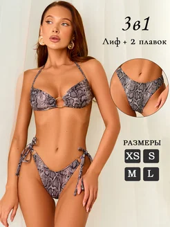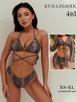 Купальник раздельный 4в1 с туникой и юбкой змеиный принт