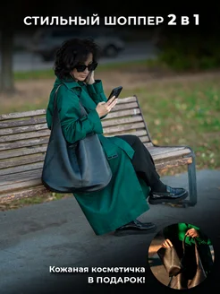 Большая сумка шоппер через плечо с косметичкой