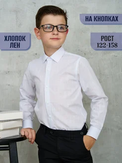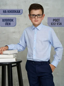 Рубашка льняная приталенная c длинным рукавом на кнопках